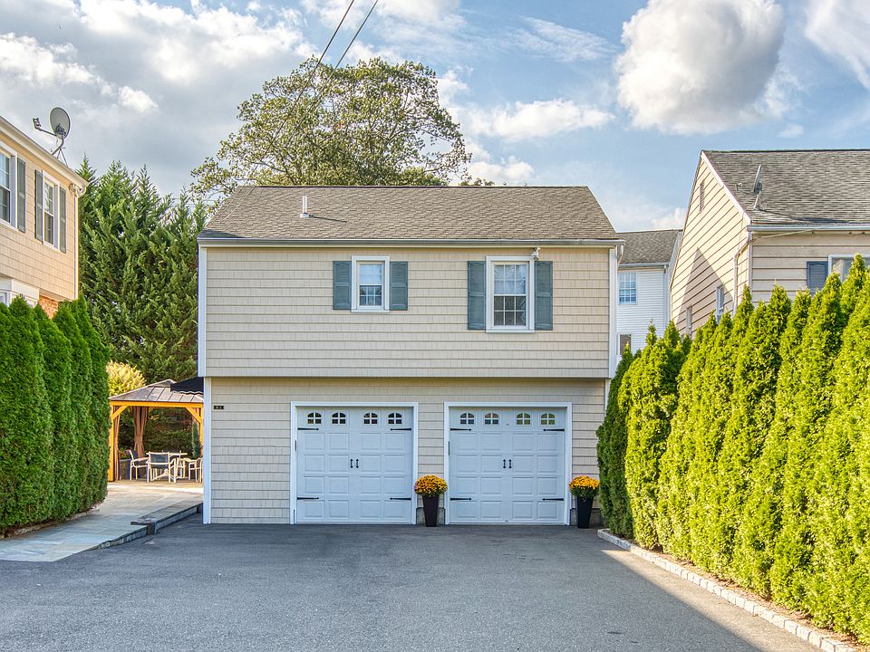 Available Immediately! Tucked away on a private drive near central Greenwich, this fully renovated apartment blends modern comfort, style and convenience. Thoughtfully designed with exceptional attention to detail, it features central air, rustic white oak floors, and all-new appliances. The sleek kitchen offers granite countertops, a stylish tile backsplash, new stainless-steel appliances, and a built-in computer desk with USB ports. The spa-like bathroom includes a heated floor, a defogging medicine cabinet with time and temperature display, and a chic barn-style shower door. The heated and air-conditioned garage provides parking for one car but may be better served as a versatile space - ideal for a home office, gym, or rec room. Outside, enjoy a private flagstone terrace with gazebo, perfect for relaxing or entertaining. A brand new washer and dryer with utility sink are conveniently located in the lower-level laundry room. Just a half mile to the train and close to highways, parks, beach and shopping, this exceptional apartment combines luxury finishes with a prime location - truly, a must see.