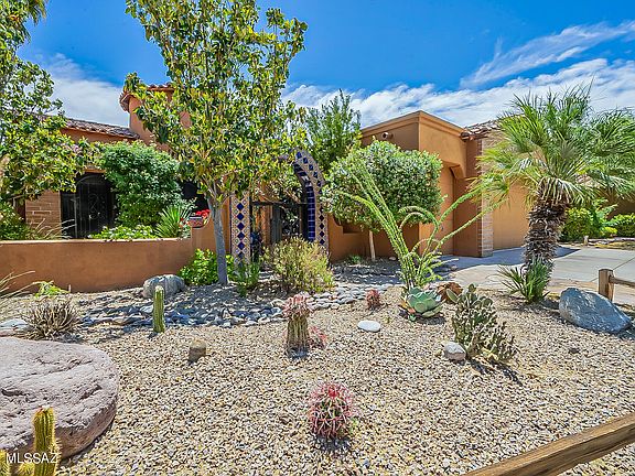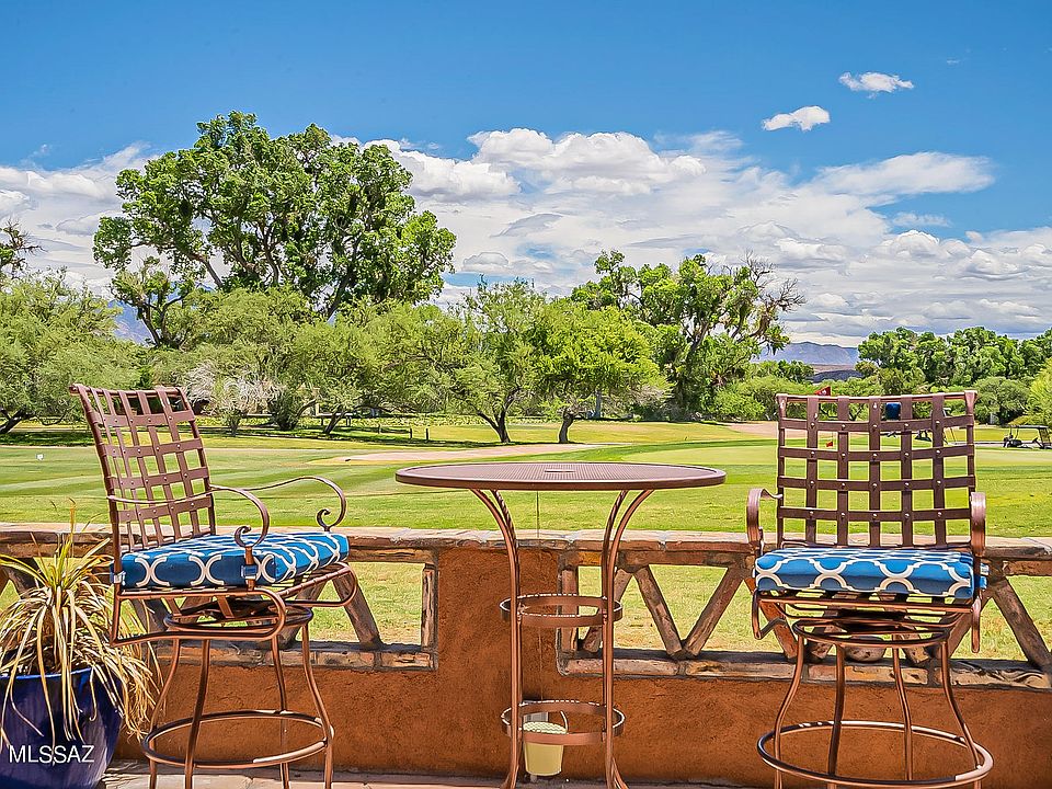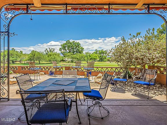* Enjoy lovely back patio views of the Tubac Golf Course, mountains, and the lily pond. The great room floorplan offers a gas fireplace, mesquite mantel and built-in entertainment center. The kitchen has mesquite counter tops, added island with granite counter tops, and Viking gas stove. Guest bedroom is a suite with a full bath. 2.5 car garage with split AC unit and cabinets. Other features include custom ornamental iron front and back & low water usage landscaping. Furnished