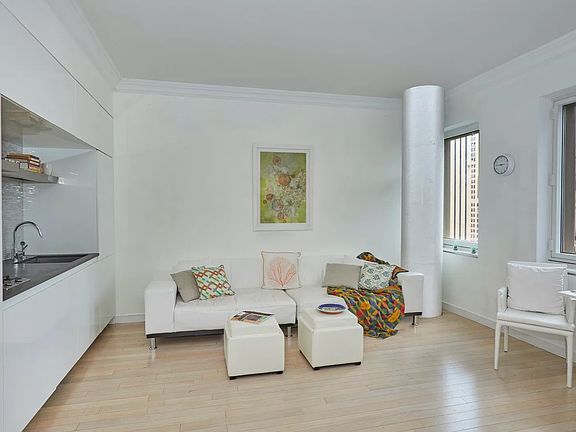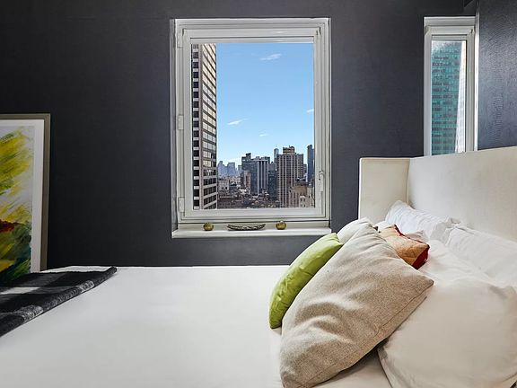 In The Clouds w Spectacular Views! Live in the clouds at the Cassa Residences! The sky's the limit in this beautiful 1 bedroom apartment featuring spectacular Manhattan views! Entertain in your modern kitchen, with high end Miele stainless steel appliances and pristine floor to ceiling white lacquer cabinets. The Living/ Dining Room is flooded w light from wall to wall windows. Your bedroom has, great storage and an en-suite marble bath. Both bed and bath are bright with windowed sky and city views. A GE stackable washer and dryer are included in the unit, for your convenience. The Cassa Residences is a vibrant, full service building, in Midtown -West. The building features a common garden deck on the 10th floor, a gym, concierge and is home to Butter Restaurant, which is headed by celebrity chef, Alex Guarnaschelli. The close proximity to Bryant Park, Fine Dining, Shopping, Public Transportation, Entertainment and more, make it the ideal location for your new home or Pied a Terre. Pets and Subletting are allowed. Call for a viewing now!