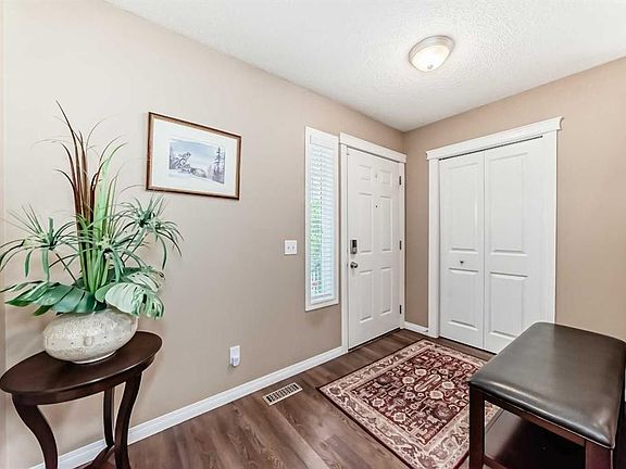 This property is pending until October 8. This home offers the perfect blend of comfort and quality, highlighted by more than $40,000 in thoughtful upgrades. Located just a 7-minute walk to the Calgary French & International School—one of the most sought-after schools in the city—this property combines lifestyle, convenience, and value. The spacious master bedroom features a luxurious four-piece ensuite and an expansive walk-in closet. The interior is designed with both style and function in mind. A wrap-around kitchen with granite countertops, a raised eating bar, walk-in pantry, and abundant cabinetry creates a welcoming space for everyday living and entertaining. The kitchen, dining area, and upper bonus room all benefit from increased size, adding to the home’s open and versatile layout. Custom-made Hunter Douglas blinds bring a touch of elegance, while a 50-gallon hot water tank, central vacuum system, and powerful air conditioner ensure modern convenience and year-round comfort. Outside, the property features a large, well-landscaped yard with mature shrubs and a private deck, perfect for relaxing or hosting gatherings. The exterior has been upgraded with additional insulation beneath nearly indestructible Hardie panel siding, not only making the home more energy-efficient and soundproof but also boosting curb appeal, durability, and even qualifying for cheaper insurance rates thanks to its proven strength and fire resistance. A rubberized driveway, walkway, and steps further enhance the home’s durability and presentation. From its thoughtful floor plan to its extensive list of upgrades, this home delivers superb value and is ready for you to move in and enjoy. The garage is fully insulated, painted, and includes additional storage space above.