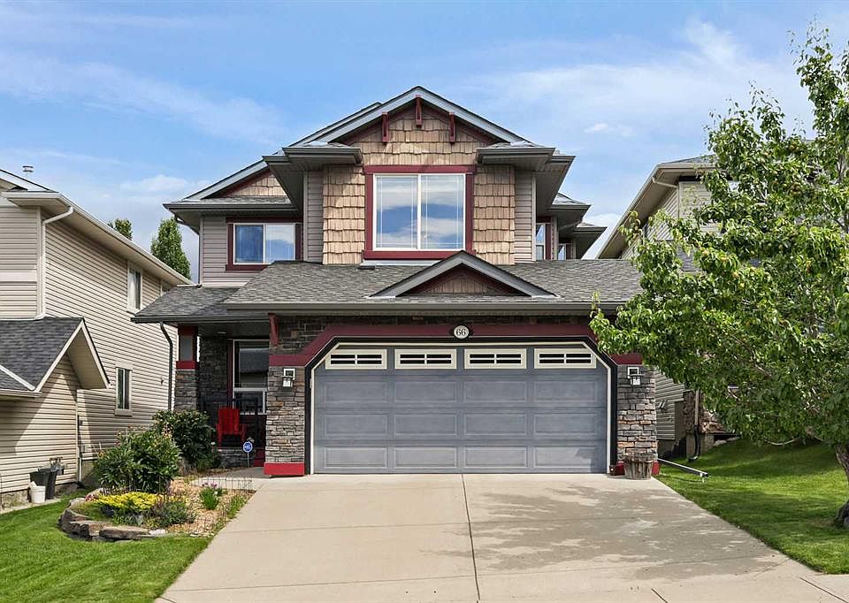 Welcome to this beautifully maintained original owner home in the highly sought-after community of Crestmont, Calgary. This bright and open-concept 2-storey features a widened double attached garage, spacious driveway, and a beautifully landscaped yard that backs directly onto a gorgeous green space with a year-round stream, offering peaceful privacy. Step inside to soaring 9-ft ceilings and a sun-filled main living area highlighted by three massive windows that flood the space with natural light. A spacious flex room greets you at the entrance. The gourmet kitchen is a chef’s delight, with brand new stainless steel fridge and stove appliances, granite countertops, a huge center island, a breakfast bar, and tile backsplash. A cozy 3-sided glass fireplace adds warmth and charm to the living and dining spaces. Upstairs, the large bonus room features stunning vaulted ceilings, creating an impressive space to relax or entertain. The primary bedroom offers high ceilings, oversized windows with views to the green space, and a unique step-up nook perfect for reading or quiet reflection. The ensuite includes an air-jetted tub, separate shower, and a walk-in closet with built-in organizers. A 4-piece main family bathroom and two additional generously sized bedrooms complete the upper level. The massive unfinished basement features high 9-ft ceilings and three large windows – ready for your future development. This quiet, family-friendly location offers the best of natural beauty and community living. A true gem in one of Calgary’s most desirable neighborhoods!