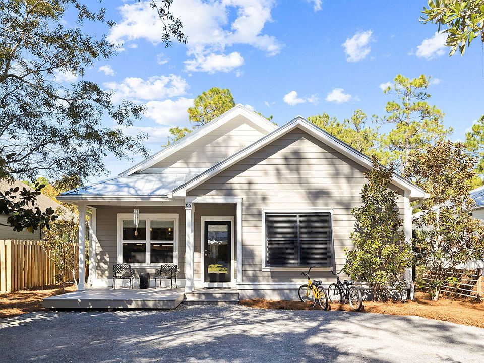 The perfect option for someone looking to move their life to the beautiful South Walton area, or to finally set root here, 66 W Georgie is a lovely 3 bedroom home with an open concept floorpan. Living space is in the front of the home, and excellent for entertaining small groups. Two ample sized bedrooms are accessible from the hallway, while at the end of the hall you will find a spacious master suite. The kitchen features a breakfast bar, and is laid out to give it the perfect ''prep triangle.'' Just behind it is a laundry room, through which the back yard is accessed. Currently undeveloped, the back yard of the property presents plenty of lifestyle opportunity or potential for expansion. The tasteful landscaping is easy to maintain, punctuating the attentiveness the property has had to date. With everything on one level, this is a comfortable home for just about anyone.