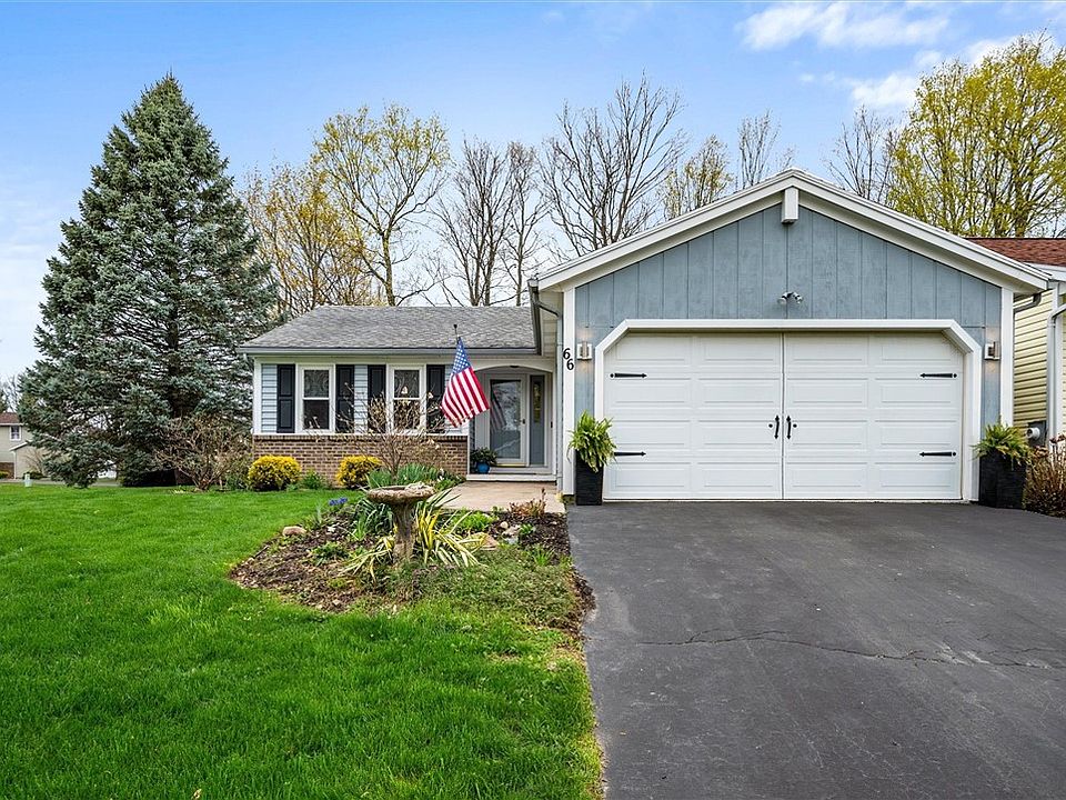 Welcome to your dream home in one of Webster’s most convenient and sought-after neighborhoods, nestled within the highly regarded Webster School District! This beautifully updated 3-bedroom, 1.5-bath ranch offers the perfect blend of modern style and everyday comfort — all in a single-level, accessible layout. Step inside and be greeted by a light-filled open floor plan with stylish updates throughout. The spacious living area flows seamlessly into a modern kitchen, ideal for entertaining or relaxing at home. All three bedrooms are generously sized, and both the full and half baths are tastefully updated for a fresh, clean feel. No-step shower, natural stone, and luxury vinyl floors in the spa-like full bath. Guest room is currently used for first-floor laundry and office and fits a queen size bed.  You'll love the storage options – oversized closets and a full basement with endless possibilities for a workshop, gym, or future finished space. Step out of your car in the attached 2 car garage with fresh epoxied floors that rinse clean and look amazing year round! Head inside to cozy up in front of the gas fireplace with brick surround. Sliders take you out to the tech wood deck where you’ll look out onto lush perennial gardens and mature flowering trees. The perfect mix of low-maintenance yard and privacy! With approximately 1,300 square feet of well-designed living space, this home checks all the boxes — location, layout, and updates — and it’s truly move-in ready! Open Houses Thurs May 1 from 4:00-6:00PM and Sat May 3 from 11:00-1:000 PM Offers due Tuesday May 6 at 12:00 PM