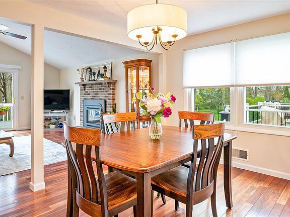 - Cathedral Ceiling(s), Separate/Formal Dining Room, Sliding Glass Door(s), Solid Surface Counters, Natural Woodwork, Window Treatments, Bedroom on Main Level, Main Level Primary