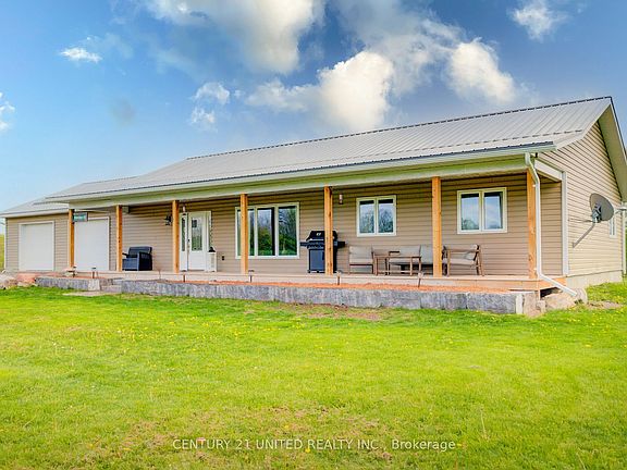 Welcome home to this less than 2 year new main fl living home on 35 acres of rural beauty. Stunning stamped concrete floors move seamlessly throughout the open-concept kitchen, dining and living room. There are 3 good sized bedrooms, and primary bedroom has walk out and enjoys a "cheater" ensuite. Set back off a quiet road between Stirling and Marmora this accessible home offers Radiant floor heating in both the house and finished approx 27 x 24 ft garage, plus home has Mitsubishi heat pump as well! Additional lg 2 pc bath plus a tidy laundry room with good storage gives you everything for main floor living and it's Wheelchair accessible too! Patio doors off kitchen dining area welcome you to relax on the sunny back deck and survey your domain! if you prefer shady lounging, the covered front porch is perfect for leisurely afternoons. Enjoy a bon fire under a canopy of stars and toast marshmallows with the kids creating years of memories! 10 mins to shops or 15 mins to hospital in Campbellford. This is one to see!