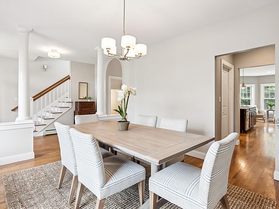 Spacious and inviting Village Green home on a large and sunny lot. This 5 bedroom 3.5 bathroom includes a newly finished basement space with a full bathroom, guest quarters, and laundry room. The main level hosts a highly functional floor plan. The kitchen features a large center island, induction cooktop, double ovens, and an enviable walk-in pantry adjacent to the formal dining room. The kitchen opens to an eat-in area and a welcoming living room with a gas fireplace, with wood floors stretching throughout the first floor. The mudroom is a dream, with bench seating and cubbies for all your gear. The back stairs take you above the garage to a bonus room with endless opportunities. The front stairs lead to the sleeping quarters, including a primary suite with high-end appointments, and three bedroom options sharing the spacious second full bath. The finished walk-out daylight lower level completes this home, with a thoughtful layout providing comfortable space for guests or entertainment. This is one of the largest lots in the neighborhood with a level backyard for fun and games, and a deck and patio for private relaxation. Village Green is a well managed homeowners association in the heart of Cumberland Center, across from award winning schools and an easy commute to downtown Portland and its cultural and culinary delights.