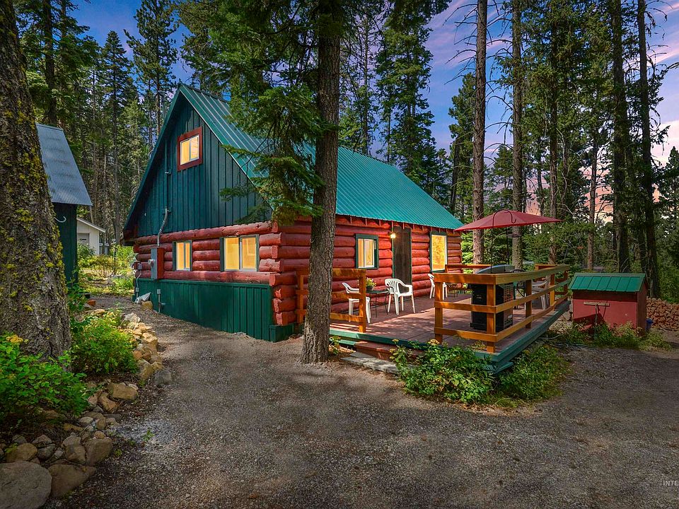 Beautiful views of Lake Cascade and the mountains from a large inviting back deck. Cute, quaint cabin in the woods on 2 lots that feature low maintenance landscaping, firepit and covered porch. Inside the kitchen has custom countertops, backsplash and breakfast bar. Large one bedroom upstairs with an additional room separated by wall for added sleeping area. But it gets better, this cozy cabin has knotty pine wainscot throughout, exposed pine ceilings, insulated bunkhouse for extra guests with storage shed. By the way, the boat launch is less than a mile away for easy access to boating, swimming and fishing. Just down the road is Tamarack resort for your winter activities. The Cabin comes turnkey with everything inside part of the sale.