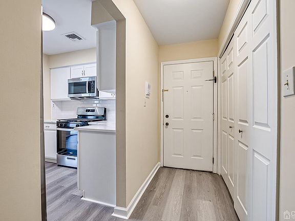 Luxury Rental: Newly Updated 2 bedroom, 2 bathroom, 2nd floor Condo with Balcony in between two privacy walls. It comes with an assigned off Street Parking space just 3 parking spaces away from the front entrance, plus additional guest parking. Location is just steps away from NJ Transit Buses and a few minutes from 2 Train Stations, a few minutes from major Highways including: NJ Turnpike and Garden State Parkway and only a 5 minute drive to Newark Liberty International Airport. This rental property boasts a newly updated kitchen with Quartz Countertops, new Stainless steel appliances and new flooring. Kitchen with Breakfast Bar flows to separate Dining room and continues to the living room while still offering an open concept- like layout. Main bedroom has an en-suite with new lighting fixtures, vanity and flooring. Main bedroom also has a large wide-open spacious closet with wrap-around shelving and central air ventilation. The 2nd bathroom has a large new double sink vanity, new light fixtures. Large Living Room space with sliding doors that lead to a spacious balcony and an outside utility/storage closet. Well maintained Central Air and Heating system. Newer Hot water heater. New Refrigerator, Dishwasher, Stove, Microwave and Washer / Dryer located in separate laundry closet with folding doors. A highlight of this Condo is its secure and private location inside of a Suite with just 3 other units having a separate Suite door. Each unit also has its own intercom system.