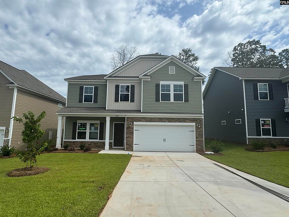 Carrington - Bradley II - elevation C on Lot #108, is a fabulous 5 BR, 3 Bath plan with 9-foot ceilings on the main level, This 3,040 SF home features an open floor plan concept including, a spacious Living Room, large Kitchen, and Formal Dining Room. The main level 5th Bedroom option has a Full Bath for guests, or can be used as an office. The upper level features a large Owner's Suite with large his & her closets, double vanity, separate shower & garden tub, and private water closet, There is also a huge loft, three additional bedrooms, and full bath. Luxury vinyl plank flooring in the foyer, office, kitchen, living room, dining room, garage entry, baths, and laundry. Sprinklers in front and back, tankless water heater and more. Neighborhood has a community pool, playground and cabana. First set of photos are of actual home, remainder are stock photos colors, specifications and options will vary. . -Ask us how we can save up to $400/month on your payments with our lender. This home is ready to go~~