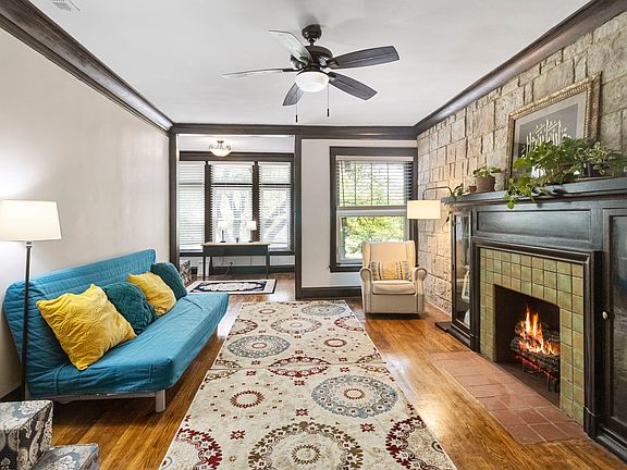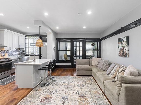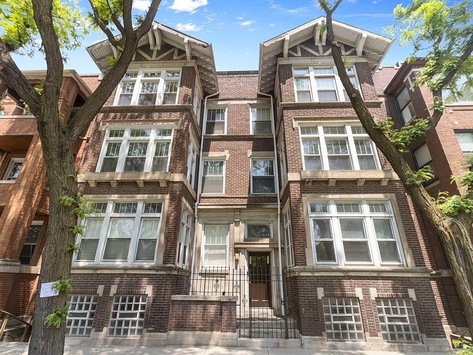 Glorious, expansive 3 bedroom 2 bath condo renovated in 2020. Open concept kitchen and dining room. Quality details include: white 42" cabinets with crown molding, dual sided stainless steel farmer's sink, stylish backsplash, quartz countertops, large island with sink and microwave, gas stove with over hanging hood, stainless steel appliances and there is a pantry. Additional features: modern lighting, upgraded electrical panel, separate room with washer and dryer, central air and newer windows. A must mention the unit has an ensuite bathroom. The amazing large living room has a fireplace (as-is) and right off of it is a sun porch which can be used to relax or as an office or whatever you can envision the space to be. The condo goes on and on. Additional space is located just behind the dining room that could be a retreat, reading room, etc. New roof in 2022. First come, first served parking in the rear. Conveniently located to the University of Chicago, downtown Chicago, Lake Michigan, expressways and the stores and restaurants in Hyde Park. Come check out this spacious home!