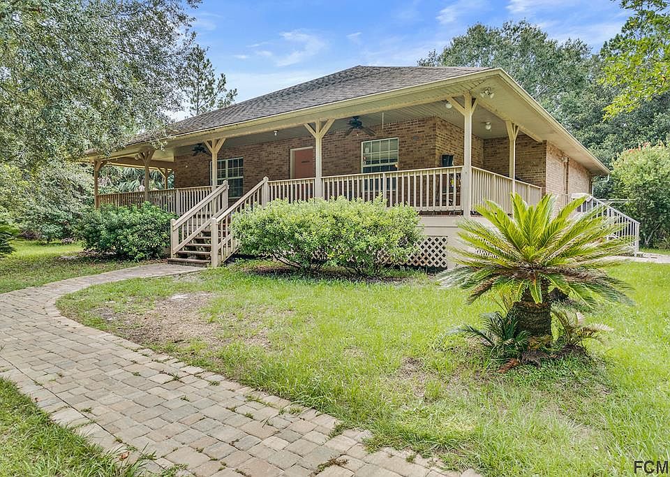 Country living at its best! Gorgeous property with 5 acres of high and dry land, in Bunnell, 10 minutes to shopping area, and 15 minutes to the beach. Well built brick home, 3 bedrooms, 2 bathrooms. Nice wrap around porch, perfect for relaxing and watch deer and turkey walk by. Shooting range, lots of space for horses or other animals. Great water system! Tool shade, huge three car garage, perfect to park your cars and other toys.