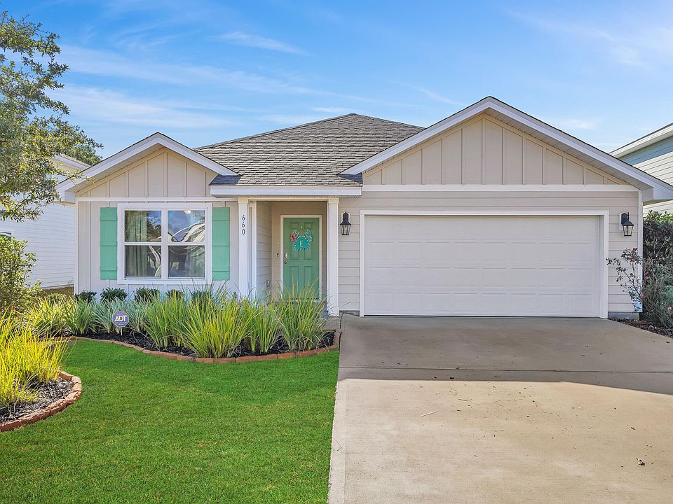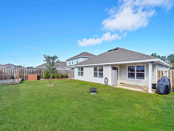 Experience easy living in the master-planned, amenity-rich Hammock Bay community in this beautiful, single-level cottage that is a short drive away from 30A beaches! Enjoy Florida living on the covered back porch or huge fenced-in back yard. Hammock Bay amenities are unmatched and include two resort-style, zero-entry pools, lap pool, dog park, miles of walking/biking trails, 24-hour fitness center, huge Lakeside Clubhouse with party room, event stage, tennis, pickleball & basketball courts, General Store, food truck court, playground, Bayfront Clubhouse with dock, and Bay-front pavilion. Hammock Bay also has a brand new brew pub and Freeport Regional Sports Complex, a 60-acre sports complex with a variety of activities. Located in Hammock Bay's Mill Cottages District, this beautiful 3 bedroom, 2 bathroom home has a spacious open concept floor plan with neutral, coastal finishes, vinyl flooring in common areas, and dedicated laundry room. The kitchen features beautiful shaker-style cabinetry, stainless steel appliances, pantry, and an island for additional seating. The master suite has a walk-in closet and an en suite with a double vanity, garden tub, and separate shower. The two guest bedrooms are separated from the master for privacy and have a full bathroom between them with shower/tub combo. The backyard is fenced for privacy and has a deck area for grilling out with friends. The exterior also features a two-car garage and full irrigation system. Additional features include Smart Home technology with Qolsys touch panel, Kwikset keyless entry, Echo dot device, and Skybell doorbell. Hammock Bay HOA fees include access to all of Hammock Bay amenities and basic DirecTV. Hammock Bay has a one-time .5% of Sales Price new buyer fee. Schedule a showing today! Buyer to verify all pertinent information in listing.