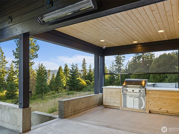 Nestled on 21+ serene acres atop Cle Elum Ridge, this stunning 2 bed + loft, 2 bath home showcases sweeping views from every room. Walls of glass, pocket slider and a NanaWall blur the line between indoors and out, while vaulted ceilings and a cozy fireplace invite relaxation. The chef’s kitchen shines with a breakfast nook, wine/charcuterie bar, gas wok, double ovens including a steam oven, and abundant pantry space. The primary ensuite boasts views, heated floors, and double shower heads. The loft offers the perfect built-in office escape. Outside, entertain year-round on the covered patio with heaters, built-in grill, mini fire pit, and electric blinds. Experience the perfect blend of luxury and nature.