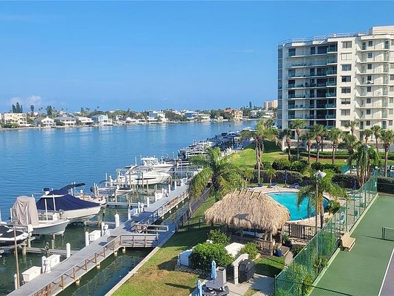 So many amenities to enjoy with this 3 bedroom, 2 bath condo that is located in the Diamond Isle Condo Community. The condo offers mesmerizing water views overlooking the Clearwater Harbor, Intracoastal Waterway and stunning sunsets over Clearwater Beach. The spacious 1650 sq foot condo offers a large living area with built-in shelving over a decorative fireplace, galley kitchen with built-in bar and dining area all with gorgeous water views to the South. The primary bedroom has an en-suite bathroom, walk-in closet and South water views. Enjoy All the Amenities such as the gym with a sauna, billiard room, clubroom, shuffleboard and inside bike storage. Outside activities include tennis courts, waterfront heated pool, Tiki Hut with outdoor grills and a community dock. Located in the HIGHLY DESIRABLE area of Island Estates in Clearwater Beach there is plenty of shopping, restaurants and a short drive to all the action Clearwater Beach offers. If you are looking for an active, waterfront lifestyle with beach vibes this is it. Schedule your tour today