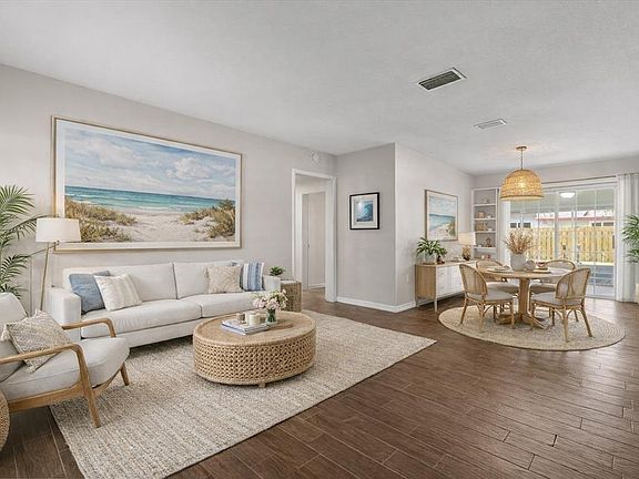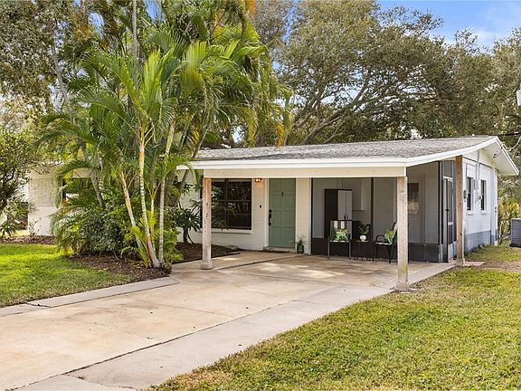 Modern finishesPalm treesSingle-car carportNew appliancesMature oak treesBright semi-open floor planFunctional single-story layout