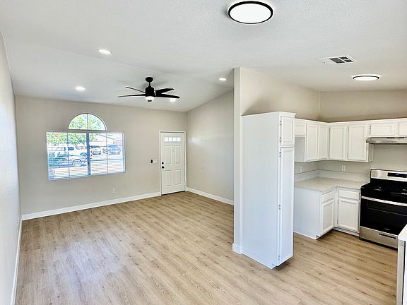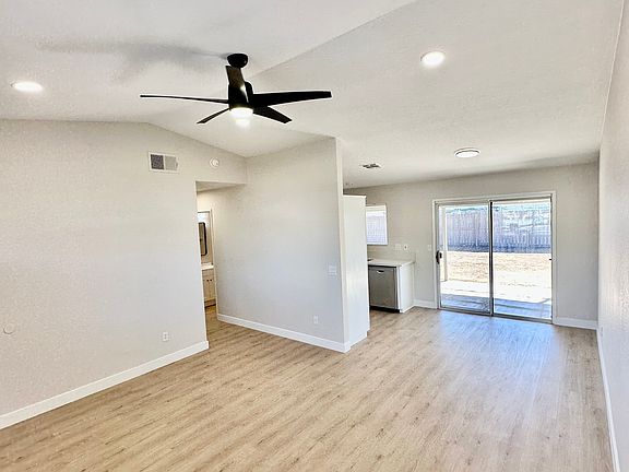 New window blindsFreshly painted wallsSleek quartz countertopsPrivate fenced backyardCovered patio