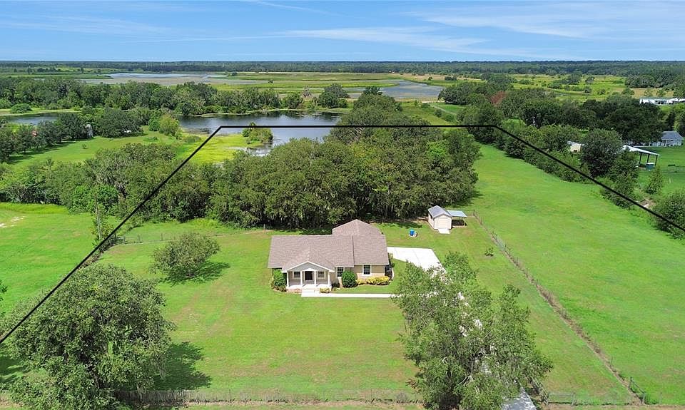 Beautiful 3 Bedroom, 2 Bath Gated & Lakefront Residence on 5+ Acres with a Horse Pasture and no HOA. Welcome to 660 Keller Rd, located in the quaint town of Fort Meade, nestled in a serene country setting where tranquility and natural beauty abound. As you approach the property, a gated entrance leads you down a driveway to this cozy haven. A welcoming covered front porch provides the perfect spot for morning coffee as you escape into the pages of a good book. Step inside and you will be greeted with an open-concept floor plan that seamlessly connects the living spaces, designed with both comfort and style in mind. The desirable layout includes a great room with elevated ceiling heights, a spacious kitchen, a dining space for formal or casual gatherings, a split bedroom floor plan and an inside laundry room that is equipped with a washer and dryer. The heart of this home is undoubtedly the kitchen which is adorned with stainless steel appliances, solid surface Corian counters, a step-in closet pantry, breakfast bar and an adjoining dining space which overlooks the tree-lined backyard and water, providing a picturesque backdrop for every meal. The cozy master suite offers a spacious walk-in closet and master bathroom with a tiled walk-in shower. The additional two bedrooms are both comfortable in size and conveniently located next to the second bathroom with a tub/shower combo and a hallway step-in linen closet. With expansive windows, the house is flooded with natural light and uninterrupted views of the surrounding landscape. Stepping outside, you will discover an attached rear carport, a utility shed for storing lawn equipment and cross fencing that separates the home's lawn from the lake and horse pasture. The highlights of this property are the lake and sprawling land, both offering endless entertaining opportunities. Enjoy a lakeside picnic or a day of fishing in the private freshwater lake and at the end of those adventures, gather around a backyard fire while roasting marshmallows and sharing stories with loved ones. The gentle sounds of nature will provide the perfect soundtrack to an evening spent under a starlit sky, creating memories that will last a lifetime. The absence of HOA rules means you have the freedom to pursue your hobbies and passions without constraints. With cross fencing and a drive-thru gate already in place, this land offers the needed accommodations for your beloved equine companions. Whether you dream of riding or simply enjoying their majestic presence, this property is a haven for horse lovers. Imagine the satisfaction of collecting fresh eggs or harvesting homegrown produce from your very own garden, experience the rewards of self-sustainability and embrace a simpler way of living. This is a place where one can truly disconnect from the outside world and reconnect with nature while being only 5 minutes from schools, shopping and dining. Additional features of this home includes: a new roof in 2018, ceiling fans throughout, shed lean-to, no front or rear neighbors, mature oak trees and more. Make your appointment for a private tour!