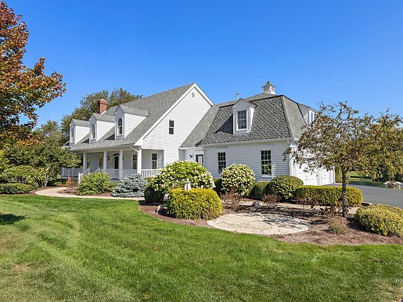 Set on a peaceful, stocked pond, this inviting home offers scenic water views, spacious living areas, and timeless design throughout! Step into a welcoming foyer flanked by the formal living room with a gas-log fireplace and the elegant dining room. The heart of the home is the chef's kitchen, showcasing beautiful cabinetry, a spacious island with leathered granite countertops, a Sub-Zero refrigerator, Wolf double oven and range with hood, and a butler's pantry that connects seamlessly to the dining room. Just off the kitchen, the spacious family room boasts vaulted ceilings and a wood-burning brick fireplace, with windows framing the lovely pond views. Nearby, an inviting office features a picture window perfectly positioned to capture the water view. Conveniently located near the garage entry are a fifth bedroom or flex space, a laundry room, a second powder room, and an additional staircase leading you upstairs. Hardwood floors run throughout the main level, lending warmth and timeless style to every room. Upstairs, the primary bedroom includes an adjacent sitting room, his-and-her closets, and an en-suite bath with a travertine tile shower, jetted tub, dual-sink vanity, and a wall of cabinetry for storage. The second floor also features new carpet throughout and three additional bedrooms, as well as a bonus room above the garage. The bright walk-out basement showcases travertine tile floors, a stone-clad wood-burning fireplace, and a beautifully appointed kitchen/bar with granite counters, rich cabinetry, -perfect for entertaining. A dedicated exercise room with mirrored walls and rubber flooring adds function, while the rec room opens to the backyard with beautiful water views. A half bath is in place, with space available to convert it to a full bath if desired. The deep three-car garage provides generous space for storage, a workbench, and more. The sellers have also expanded the asphalt driveway to include an additional parking area, offering even more space for extra vehicles. A spectacular setting, come see it for yourself!