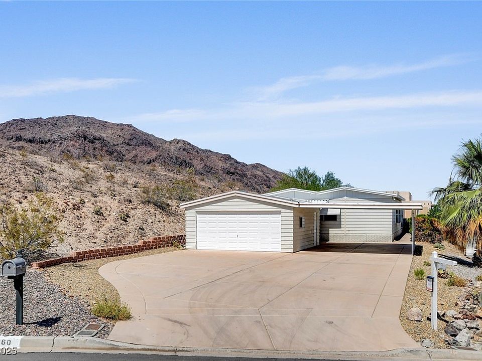 Step back into simpler times in this vintage, original owner Silvercrest/Chalet model manufactured home, located in the Lake Mtn. Estates 55+ community (Phase 1). This home features a 10,000 sqft lot perched up against a protective hill with no neighbors to the north side of the home, 1770 sqft , 2 BD, 2 BA, formal living room, spacious kitchen, which has plenty of storage and is open to the family room to enjoy gathering. Relax and take in the sweeping views of Lake Mead and the surrounding mountains from the comfort of your wraparound covered patio. A 2 car garage along with a carport for shady parking completes this desirable property. Convenient location in Boulder City with easy access to restaurants/shopping/local festivals. Nearby is Lake Mead NRA for boating/fishing/kayaking and there are miles of hiking/biking trails as well. This welcoming little city offers numerous amenities, making it an ideal place to call home!