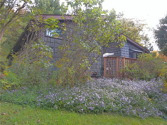 Beautiful contemporary home with a nice setback from the road on 8 acres. The property is a wildlife paradise. Well established landscaping with beauty each season. An above ground swimming pool with a wrap around deck. Amazing views in every direction. Several sliders positioned throughout the home to bring the indoors in. Walk out basement that has a family room and utility room with tons of storage. The main level has a great kitchen for entertaining and a formal dining room leading to a living room continuing on to a den /office and an enclosed sunroom. Sliders off the sunroom gives a view of a fish pond and patio with a full wooded backdrop. The deer and other wildlife are fun to watch from inside or take a walk through the beautiful pathways in the woods. Three bedrooms and 2 full baths complete this floor. The laundry is on the main floor but could be moved to the finished basement if preferred. The home has 3 sources of heat - baseboard, electric, and propane stoves. There is also a setup for a generator.