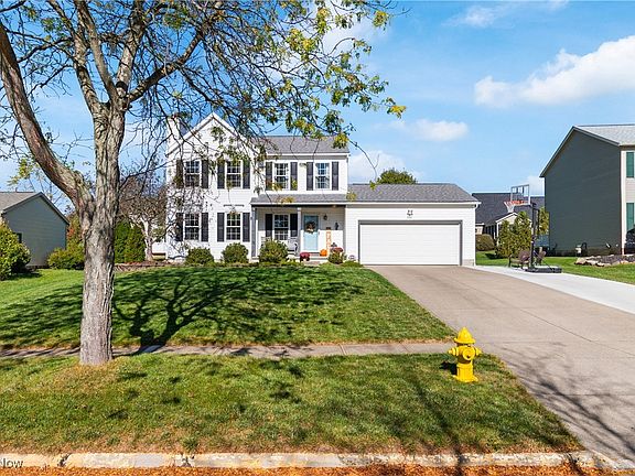 Step into comfort, style, and peace of mind with this beautifully maintained colonial in the sought-after Wintergreen neighborhood. From the moment you arrive, the charming curb appeal, manicured lawn, and welcoming front porch set the tone for what awaits inside. The spacious living room invites you to unwind with its rich wood floors and cozy gas fireplace. Natural light fills the open layout, seamlessly connecting the dining area and kitchen, where stainless steel appliances and a view of the backyard create a space that’s both functional and welcoming. Convenience is key with a main-level laundry room and a guest half bath just steps away. Upstairs, retreat to your private primary suite, complete with a walk-in closet and en suite bath. Two additional bedrooms offer generous space for family, guests, or a home office, along with an full bath. The finished lower level adds valuable living space—ideal for movie nights, a home gym, or a playroom. Step outside to your backyard featuring a custom stamped concrete patio and built-in fire pit, perfect for entertaining or relaxing. Nestled on a quiet street, this home is just minutes from Wadsworth schools and YMCA. Key updates include: roof-13-15yrs, furnace-5yrs, a/c-2yrs, windows-6yrs, hot water heater-7-8yrs.