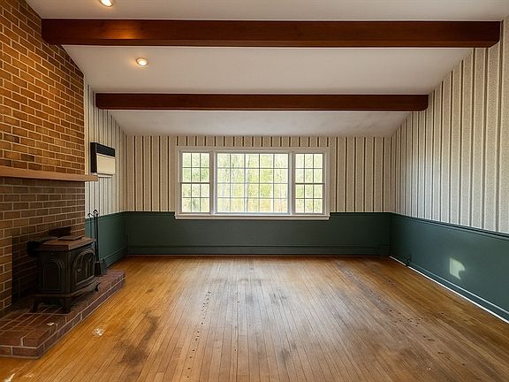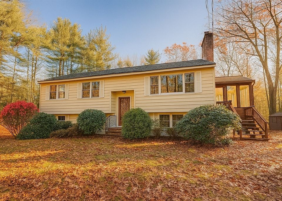 A fantastic investment opportunity with endless potential awaits on this 4-acre private Groton property. This raised ranch features a bright sunroom with walls of windows, a spacious living room with wood beams and a brick fireplace with wood stove, and a sunny kitchen ready for updating. The main level offers three bedrooms and 1.5 baths, all filled with natural light. The lower level includes a bonus room ideal for additional living space, plus laundry hookups and washer/dryer. Outside, enjoy a 2-car garage, small barn for storage, a shed, and expansive yard space surrounded by mature trees. A peaceful retreat with endless potential, surrounded by the natural beauty Groton is known for.
