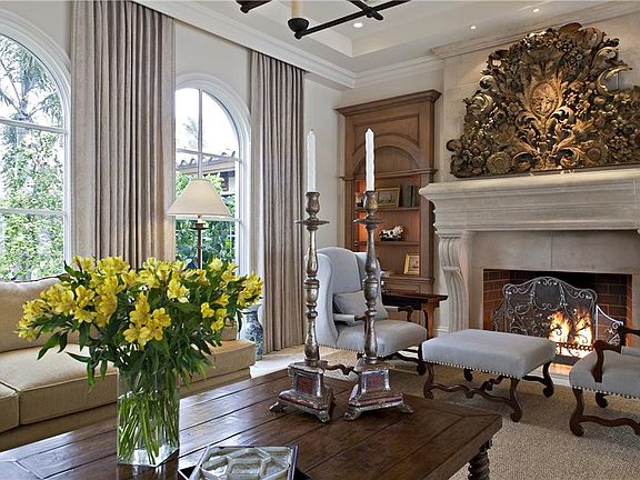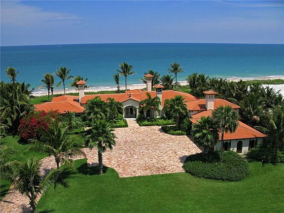 This stunning oceanfront villa is situated on approximately 2 acres with 200+ feet of direct beach frontage and panoramic ocean views. It has a private wrought iron gate and beautiful dramatic entrance. This home was inspired by the Italian Mediterranean & French Cote d'Azur. The 4 bedroom, 4 ½ bath home, built all on one-level, features the highest quality marble, custom craftsmanship & cabinetry, a fireplace and a beautiful library with floor to ceiling bookcases. The gorgeous gourmet kitchen has granite countertops, an extra-large island and a chef’s cooktop. With spacious and elegant formal and informal rooms, and over 5500 feet of living area, the home is perfect for entertaining.Exterior features include a built in BBQ, a pool with hot tub, a custom Tuscan inspired pergola and an air conditioned 3-car garage. This home is located on South Beach on the Barrier Island. Sizes approx./subj. to error.