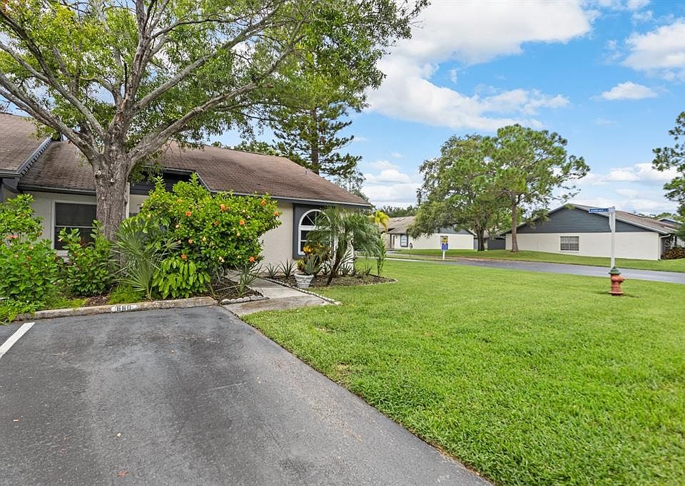 Welcome to this amazing starter villa, vacation home or investment opportunity! LOW HOA!! NO flood zone! 3 bedroom and 2 full bath, end unit. Large Master Bedroom with private bathroom and walk-in closet. Vaulted ceilings in the main living area. Screened in lanai with storage. Back deck overlooks the greenbelt and view of the pond. Indoor laundry. The HOA provides lawn care and access to community pool.