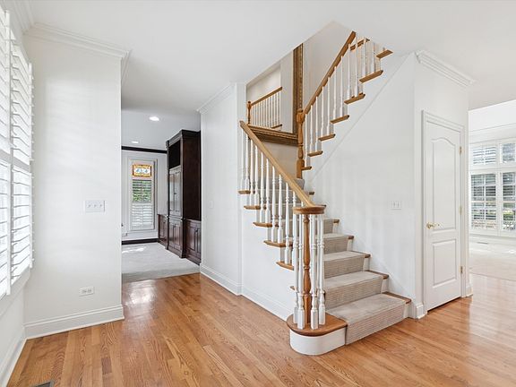 Welcome to picturesque Conway Farms! 660 Buckingham is the spacious, light-filled two-story colonial you've been waiting for. Situated on one of the community's largest lots, this elegant brick home impresses from the moment you arrive. The professionally landscaped yard and brick paver walkway lead you to a gracious foyer that opens to inviting living spaces filled with sunshine. The living room with a cozy fireplace and the adjacent dining room-both featuring expansive windows with plantation shutters-offer beautiful views of the surrounding nature year-round. Every season provides a stunning backdrop from this private, premium lot. The heart of the home is the expansive kitchen, designed for both everyday living and entertaining. It features abundant cabinet storage, granite counters, a center island, stainless steel appliances, and a generous eating area with sliding doors leading to the brick paver patio-perfect for summer BBQs and outdoor gatherings. Custom details throughout the home include hardwood floors, vaulted and tray ceilings, elegant chair and crown moldings, and an office with built-ins crafted from antique barnwood. The soaring ceilings and floor-to-ceiling windows create a bright, airy feel that makes every space at 660 Buckingham warm and welcoming. A powder room, mudroom, and attached two-car garage complete the main level. Upstairs, you'll find three spacious bedrooms-each with its own walk-in closet and ensuite bath-providing privacy and comfort for family or guests. The finished lower level, with charming cedar paneling and classic plaid carpeting offers a versatile space featuring a full bath, recreation area, laundry, and exceptional storage. Throughout the home, a neutral palette provides the perfect backdrop for your personal touch. Additional highlights include a generous two-car garage with a floor-guard coating and a painted exterior completed a few years ago. Enjoy maintenance-free living with landscaping and snow removal included. Conway Farms residents also enjoy access to premium amenities-pool, tennis courts, ponds, and wooded nature trails. Located near historic Market Square, Lake Forest's beautiful beach, shopping, dining, O'Hare, and the Metra train-you truly have it all at 660 Buckingham! Welcome Home!