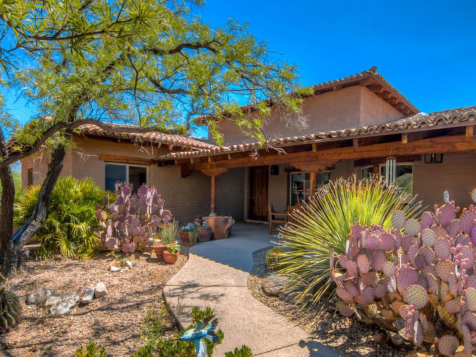 This exceptional property contains a 3 bed/2ba home that is 2835 sq. ft. per assessor and an approx 1150 sq. ft.guest home/shop that is built in the same character as the home. Everything about this home and property present a once in a lifetime opportunity for the buyer. 14'' thick mud adobe wall construction outside and diamond plaster inside, endless views of both the Catalina and Rincon Mountains, exquisite and expansive back porch areas which serve as remarkable entertaining areas for the pebble tec pool.The great room is spacious enough to contain both a full grand piano and a pool table with room to spare. Added to this home is a guest home/shop that is approximately 1150sf,once used for shop/studio fully finished, bath, bedroom and set up to have a kitchen.AMAZING,GOOD HORSE PRO