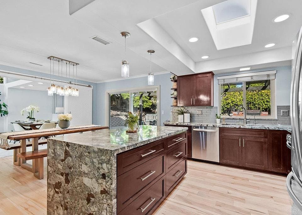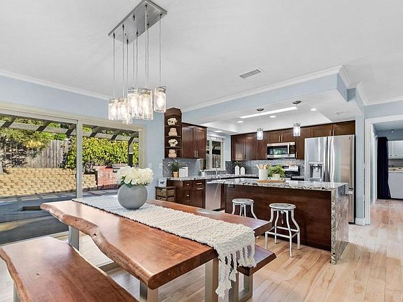 Major price drop! Your dream home at an unbeatable value. Welcome to your dream home in beautiful Escondido, California! Nestled in scenic North San Diego County, this captivating 3-bedroom, 2-bath property spans approximately 1,752 square feet of impeccably designed living space. A stone’s throw from both Interstate 15 and the 78 freeway, the location combines easy access to the best Escondido has to offer with the peace and quiet you crave. No HOA fees here! And with a fully paid-off solar system, energy costs are wonderfully low, helping you save month after month. Step into the heart of this home: a spacious kitchen complete with stainless steel appliances, rich cherry cabinetry, and striking granite countertops. The adjoining living spaces are equally inviting, with new carpeting throughout, crown molding, and a cozy gas fireplace in the formal living room that makes for a perfect place to unwind. The outdoor area extends your living space, featuring a fully fenced patio under shaded awnings—a perfect spot for entertaining or quiet relaxation. For those with vehicles and toys, there’s ample parking on the property, including space for RVs. Inside, the list of upgrades continues: the home has a whole-house water system with pH alkaline water, a newer HVAC system, energy-efficient LED lighting, double-pane windows and doors, and fresh interior and exterior paint. Storage is abundant, with a well-organized pantry and additional shelving throughout. And the gas stove, complete with a beautifully tiled backsplash, makes cooking a delight. To top it off, the landscape here is as productive as it is beautiful, with mature fruit trees including pomegranates, white peach, tangerine, and blood orange. This home is not just a place to live—it's a place to thrive, close to fantastic shopping, dining, and more. Come see all that makes this Escondido gem truly exceptional!