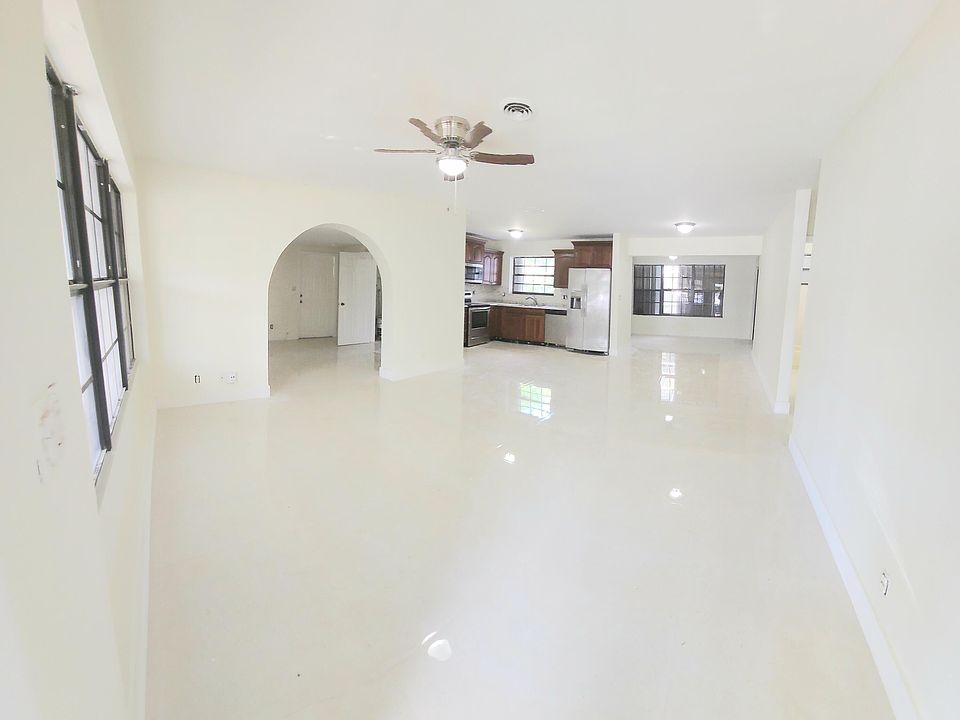 Spacious 3 bedroom 2 bathroom home, with bonus den that can possibly be converted to a studio apartment or 4th bedroom. It has a private screened pool, delicious fruit trees.,new central air conditioning unit, hurricane shutters, brand new large porcelain tile and multiple car parking space. This property is located within walking distance of Westwood Heights Elementary and St. Thomas Aquinas High School. A short drive from the beach, downtown, the ports, highways, and local stores. This home is priced to sell with MOTIVATED sellers, this home will not last!!!