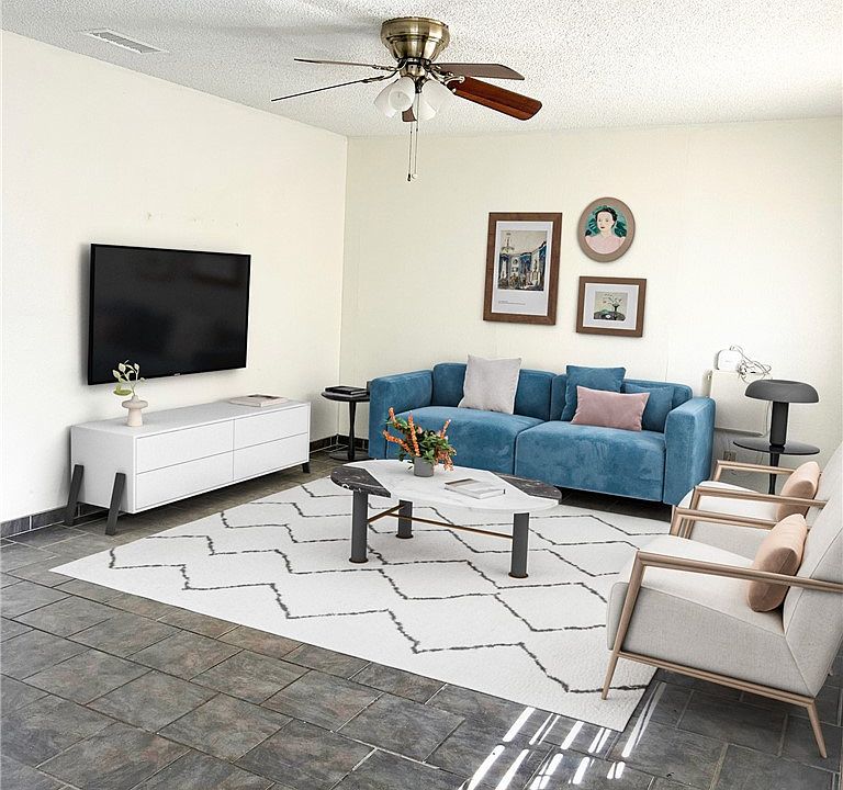 Rarefly find three bedrooms house in this Senior 55+ community. Upgraded kitchen counter and cabinets, pull-out faucet. Newer roof, three bedrooms two have ceiling fans. Living Room has ceiling fans as well. Newer AC. Laminated floor in all bedrooms. Tiles in living room, the kitchen and bathroom. Low HOA fee and property tax. Very quiet neighborhood but close to everywhere. Two minutes to the main Florida street where you can find banks, Hemet shopping mall and all kind of restaurants and several grocery stores. 5 minutes to Home Depo and Lows. 10 minutes to Saboba Casino ect