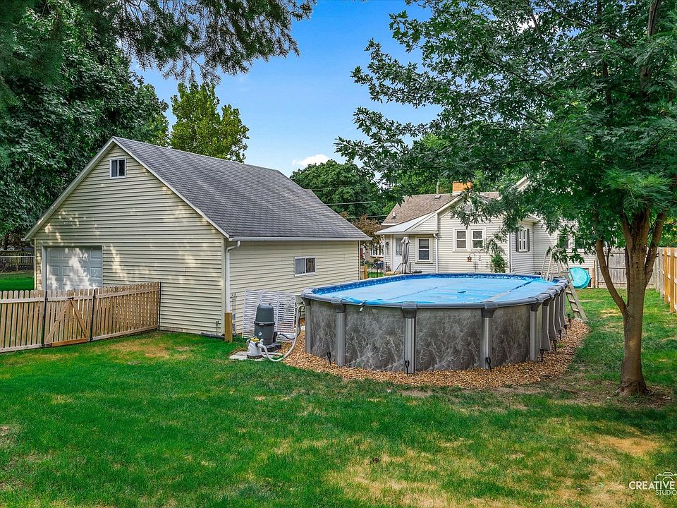 Welcome to this charming 3-bedroom Cape Cod filled with modern updates and character. Step inside to find fresh paint throughout, a mix of hardwood and vinyl plank flooring, newer 2-panel doors and trim, and an abundance of natural light from newer windows. The kitchen is a true highlight with granite countertops, stainless steel appliances, and plenty of workspace including a pantry cabinet. Just off the kitchen, the convenient mud/laundry room makes daily routines effortless. The spacious dining room features a beautiful arched built-in niche with cabinet storage-perfect for both display and function. Upstairs, a cozy loft area provides an ideal work-from-home or study space. Outside, enjoy summer days in your brand new 15x30 above-ground pool, or entertain in the huge fenced backyard. The large, extra-deep 2.5-car garage with its own electrical panel, pass-thru door, and rafter storage offers endless possibilities for a workshop, hobby space, or additional storage. Roof was replaced in 2013 for peace of mind. Located close to town, schools, and with easy access to Peace Rd. and I-88, this home combines charm, updates, and convenience-all in one package! Previous Buyer's loss is your gain!