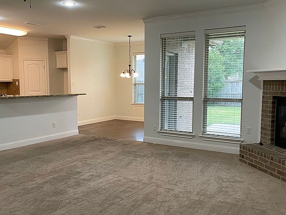 This beautiful 4-bedroom, 2-bathroom home features a spacious open floor plan with carpet in the living room and bedrooms, and stained concrete in the kitchen and other areas. It includes a cozy corner gas fireplace, perfect for relaxing or entertaining. The kitchen offers granite countertops, plenty of cabinet space, and a stylish custom backsplash. The primary bedroom includes a private en-suite bathroom and his-and-hers closets. Enjoy the outdoors on the covered back porch or in the fully fenced backyard perfect for privacy and comfort. The home also features an automatic sprinkler system to help maintain the lawn with ease. Key Features: 4 Bedrooms, 2 Bathrooms Carpet in living room and bedrooms Stained concrete in kitchen and other areas Gas fireplace in living room Granite countertops and custom backsplash Spacious primary suite with his-and-hers closets Covered back porch and fully fenced yard Automatic sprinkler system Located in a quiet, well-established neighborhood HOA fees covered by landlord Tenant is responsible for utilities and lawn care No smoking allowed inside the home No pets allowed 12-month lease required Application fee is non-refundable Security deposit required upon approval Questions? The leasing team is bilingual. Inquiries are welcome in English or Spanish.
