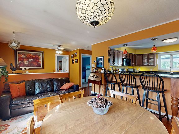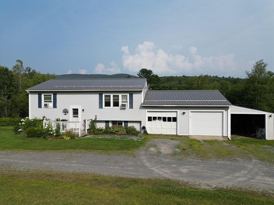 Set on 2 private acres bordered by an open field and gentle hills, this wonderful Underhill home offers the perfect blend of comfort, charm, and everyday convenience. The open floor plan creates an easy flow from the remodeled kitchen—featuring granite counters and black appliances—to the inviting dining and living areas, ideal for gathering with family or friends. Upstairs, two comfortable bedrooms and an updated full bath provide a restful retreat, while updated flooring in the hallway, living room, and kitchen enhances the home’s warm, cohesive style. The finished walkout lower level adds flexible living space with a family room, additional bedroom, and ¾ bath—great for guests or a home office. A cozy pellet stove keeps winter nights warm, while front and back decks invite you to unwind outdoors and enjoy the gardens, open field, woods, and Vermont’s natural beauty. The spacious yard offers berries, perennials, and plenty of room for play or gardening, along with a large shed for projects. A two-car garage with workshop space and an additional carport/woodshed add practical convenience. Major updates include a new roof and a high-efficiency propane boiler/hot water system, both installed in 2018. Enjoy the best of Vermont living just 20 minutes from Smugglers’ Notch Resort and an easy commute to Essex or Burlington—where adventure, work, and relaxation all come together.