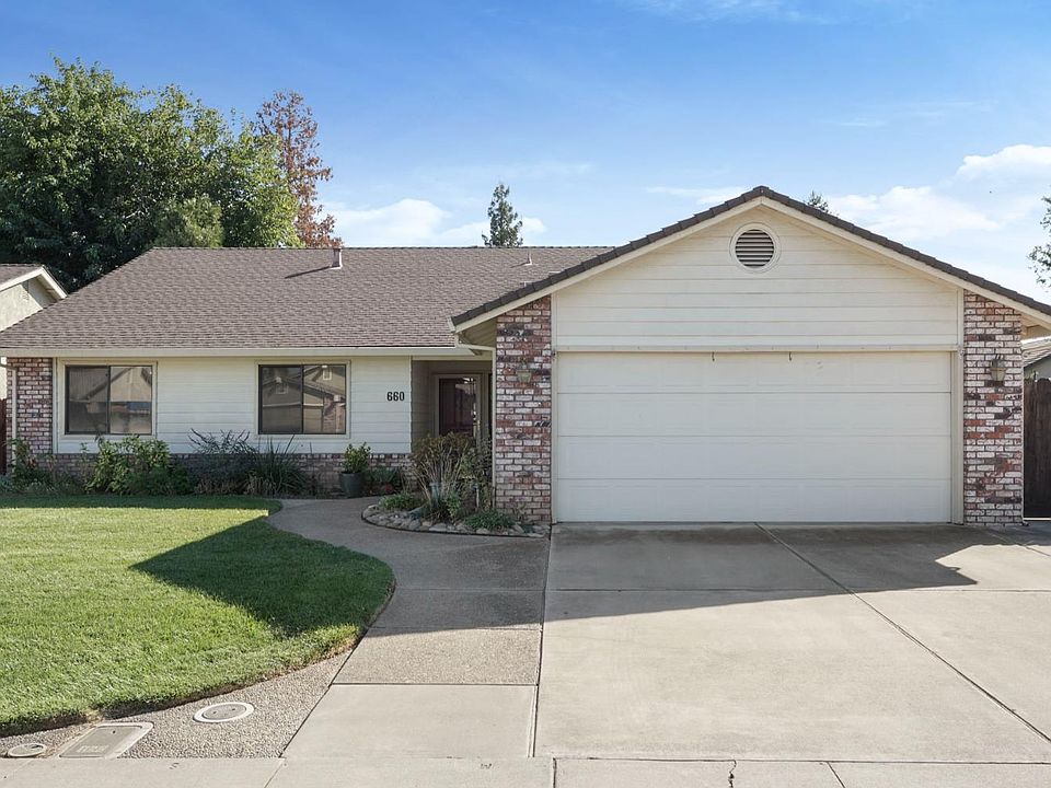 Ideally located near shopping, schools, parks, and quick freeway access, this single-story 4-bedroom, 2-bath home offers both comfort and convenience. Enjoy spacious living with a separate living room and a family room featuring a cozy fireplace and wet barperfect for entertaining. The kitchen opens to the dining area with French doors leading to a private backyard retreat with mature landscaping, gazebo, and covered patio. Tile floors throughout most of the home make maintenance easy. The primary bedroom provides direct access to the backyard for peaceful morning coffee or evening relaxation. Indoor laundry room includes extra cabinets and a utility sink. Plenty of off-street parking, RV access, and a storage shed add function and flexibility. A great opportunity in a desirable neighborhoodready for your personal touch!