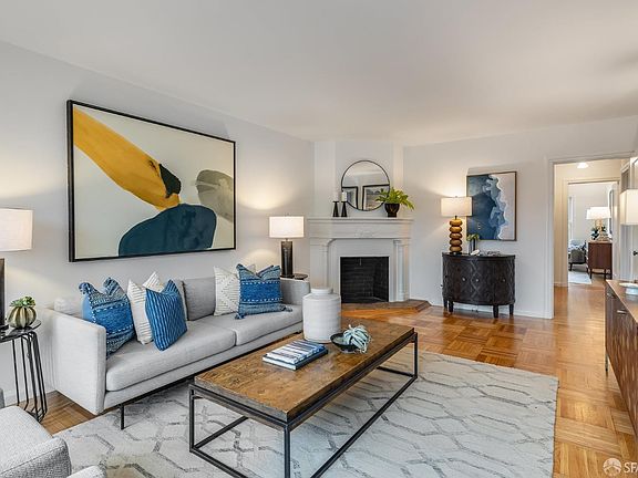 Landscaped backyardBeautiful period corner fireplaceWall of windowsBay and hill viewsGenerous closet spaceNewly refinished hardwood floorsCustom built-ins