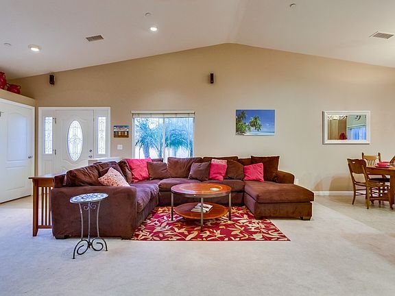 Built in 2007! Well-designed one-story home that is highlighted by a "great room" that combines the living room, kitchen and dining area with a shared vaulted ceiling to create a very open and functional space. Living room features a gas fireplace and is wired for home theatre surround sound. Modern kitchen offers an island, granite counters, maple cabinetry and stainless steel appliances. Spacious master suite includes a large walk-in closet and bathroom with dual showers. Secondary bedrooms are properly sized and share the hall bathroom. Indoor laundry room and ample built-in storage for convenience. Private rear yard includes a built-in BBQ island and paver patio for weekend entertaining. Fully landscaped with automatic sprinkler system. Finished two-car garage with direct access to interior of home. Additional features include a fire sprinkler system in house and garage, central heat and air conditioning, tankless water heater, dual pane windows and security system. Very private with an electronic gated entry for added security.