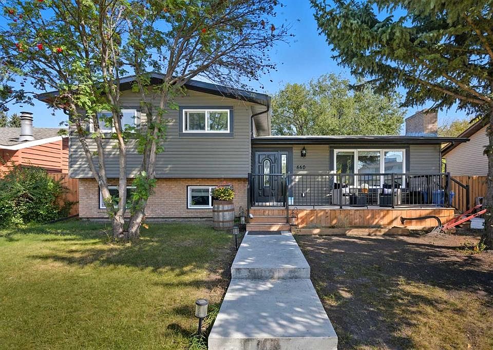 Welcome to this recently renovated 4-level split in the friendly community of Carstairs. With 4 bedrooms and 2 full bathrooms, this home offers ample space and thoughtful updates throughout. The modern kitchen features stylish finishes and ample workspace, making it perfect for both everyday meals and entertaining, while the main living room is cozy and inviting. As you make your way to the upper level, you'll discover the master suite, featuring his and hers closets, an additional bedroom, and a full bathroom, providing ample space for family members or guests. The lower level boasts two more bedrooms and a 3-piece bathroom. The spacious 4th-level family room, complete with a wet bar, is the ideal spot for movie nights, game days, or hosting friends and family. Set on a large, treed lot, the outdoor space is just as impressive. A generous back deck with a gazebo provides the perfect place for summer barbecues or quiet evenings, while the oversized garage and 10X16 shed offer abundant storage and workspace. The back of the house and garage have LeafGuard installed for your convenience. Close to schools, parks, and all the conveniences of small-town living, this move-in-ready home combines modern updates with a private, relaxing setting. A wonderful opportunity to make Carstairs your home!