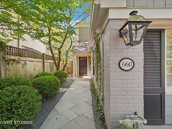 Nestled in one of Winnetka's most desirable neighborhoods, 660 Walden Rd offers a perfect blend of timeless elegance and modern luxury. Set on a meticulously landscaped lot, the property boasts classic architectural details with a stately brick exterior, a charming paved driveway and welcoming front entry. Delightful gas lanterns adorn the home's facade and the cleverly hidden garage door has a window that helps it blend seamlessly into the front of the home, enhancing its refined look. The interior offers expansive living spaces that blend warmth and sophistication. The formal living room is centered around a cozy fireplace with a beautifully crafted wood mantel. Custom built-in bookcases, enhanced by picture lighting and elegant drapery throughout, reflect the home's traditional decor. For effortless entertaining, the formal dining room is conveniently located adjacent to the kitchen. The large family room, sharing a two-sided fireplace, provides a serene environment perfect for relaxation at any time of day. Sliding French doors lead to a tranquil back patio where you can unwind amidst lush greenery and the exquisite backyard garden. For the culinary enthusiast, the kitchen is a dream come true. Outfitted with high-end stainless steel appliances, wine refrigerator, custom cabinetry, and an island that provides ample space for meal prep. A nearby full bathroom serves the home's first-floor office, which features built-in cabinets and a private side entrance. Upstairs, the luxurious primary suite is a private haven, complete with a fully renovated spa-like ensuite bathroom. This space offers heated floors, a soaking tub, a walk-in shower, and a custom vanity. A professionally designed walk-in closet meets all your storage needs. Additional bedrooms are generously sized, each with ample closet space, including one with an ensuite bath. A convenient laundry closet completes the upper level. Lovingly maintained and just minutes from downtown Winnetka, award-winning schools, parks, and the shores of Lake Michigan, 660 Walden Rd strikes the perfect balance of suburban tranquility and urban convenience. This is a rare opportunity to own a truly exceptional home in a premier location.