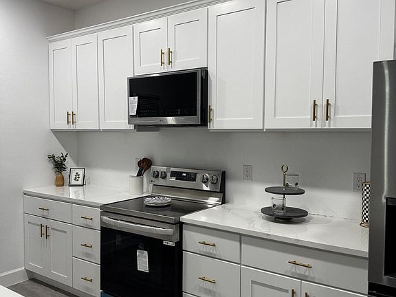 Split-bedroom designHigh-end finishesOpen-concept interior spaceStylish kitchen backsplashVinyl plank flooringImpact-rated windows and doorsAll white plywood cabinetry