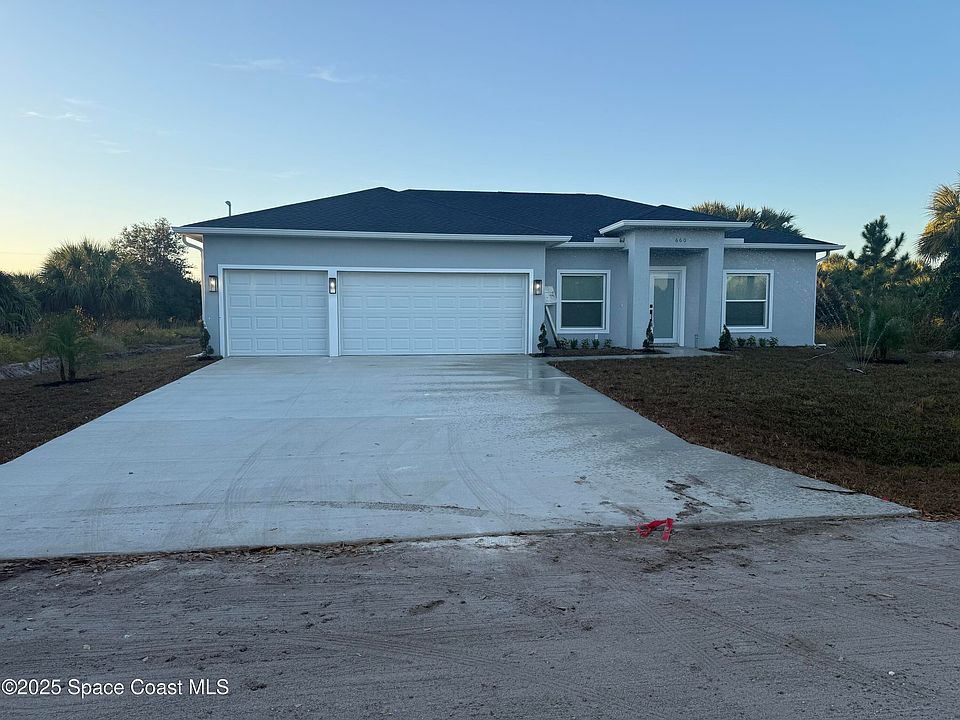 Welcome to this beautifully crafted, brand-new single-story home scheduled for completion in November 2025. With 4 spacious bedrooms and 2 full baths 3CAR GARAGE!, this home is perfect for the growing family or those looking to retire in comfort. Listed at $375,000, it offers excellent value at approximately $209 per square foot. Full 3-car garage — a rarity in new construction at this price point. High-end finishes: vinyl plank flooring, tiled showers, all white plywood cabinetry, and a stylish kitchen backsplash. Impact-rated windows and doors provide peace of mind and durability. 10-foot ceilings elevate the open-concept interior space, creating a light and airy feel. Split-bedroom design with an open floor plan gives privacy and flow for everyday living as well as entertaining. No HOA to worry about—offering flexibility and lower monthly costs. Excellent location just minutes away from the Bayside Lakes area, key amenities including a supermarket (Publix), high school and more!