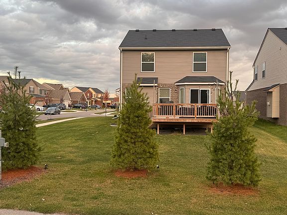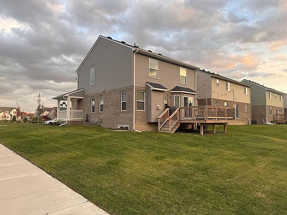 Welcome to this modern 3-bedroom, 2.5-bath single-family home offering 1,700 sq. ft. plus a finished basement. Built in 2023, it features luxury vinyl plank flooring, granite countertops, upgraded lighting, fresh paint, a cozy fireplace, and custom closets. Enjoy a wood deck, extended driveway, wrap around front porch, sprinkler system, and attached 2.5-car garage. Smart features include a Ring doorbell, Ecobee thermostat, and Chamberlain smart garage opener. Appliances (gas stove, oven, fridge, dishwasher, microwave, washer, dryer) are all included.
