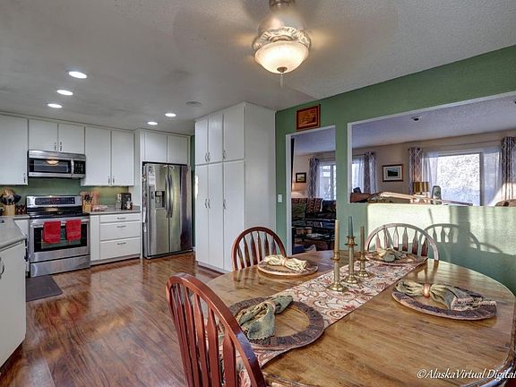 Completely renovated, spacious duplex with a large fenced yard, detached oversized 1 car garage - that will fit two small cars, or one car and toys (and has a new roof and interior sheet rock) and brand new 10x12 shed built in 2016. New water heater, 95% energy efficient boiler, and windows installed in 2013! Within 5 miles of JBER and Tikahtnu Commons. Each unit has a private entrance, 2 bedrooms and 1 bathroom, as well as private washer and dryer. The property has a 5 star energy rating, mountain views, Trex deck off of Unit A, and ample parking. Pride of ownership really shows! This is one you have got to see! Unit A boasts an open concept with a large kitchen that includes stainless steel appliances, corian counter tops and custom cabinets. Laminate flooring throughout. Rents for $1,600/month. Unit B has concrete flooring, with carpet in bedrooms, bamboo counter tops and stainless steel appliances. This unit shines with a large master bedroom and walk-in closet, as well as a newly remodeled bathroom including a walk-in shower. Rents for $1,300-$1,500/month.
