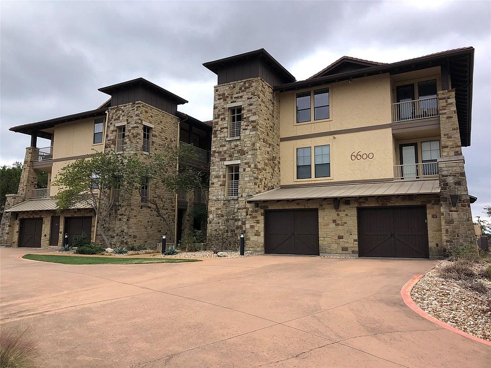 Great opportunity to own the largest waterfront villa floor plan in the desirable 1,400 acre resort-style community of The Hollows on Lake Travis. This 1,725 sq. ft. 3 bedroom, 3 bath is bright and spacious with an open floorplan complete with custom blinds, high ceilings, large balcony, single car garage and offers waterfront and hill country views. This quiet villa is located at the end of the building next to the homes on The Peninsula. The attractively designed stone and stucco entry invites you to the front courtyard entry that leads you to an elevator to take you to this second-floor unit. The entry foyer opens to the large living area which adjoins the kitchen and dining area. The owner's suite has a walk-in shower, large tub, double vanity, and walk-in closet. The second guest suite is complete with hill country views and on-suite private bath. The third bedroom shares the full bath in the hallway. There is a full-size washer and dryer and an outside storage room. The unit offers plenty of cabinet, closet and storage space for everyday living or weekend get-a-ways, The private and spacious balcony provides the perfect place to entertain and take in the refreshing breezes, relaxing sunrise, and memorable evening views of the lake. The villa is conveniently located near the award-winning North Shore marina (rental boat slip conveys with the purchase) and the Beach Club amenities. The Hollows' amenities are top-notch and incudes a beach club with 2 pools, hot tubs, restaurant, sport/pickle ball courts, playground, community grills, smoker, and pavilion, 16 miles of hiking/biking trails, award winning North Shore marina and ship store, and newly updated fitness center. All of this in a well-maintained and active community that has regularly planned events each month. Refrigerator, washer, dryer, & outdoor electric grill convey with sale. Owner Financing available. Also available for Lease.