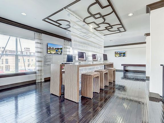 - Exterior features: 9- to 10-Foot Ceilings, Black Galaxy Granite Kitchen & Bath Countertops, Convenient, Under-Cabinet Lighting, Designer Kitchen Cabinets with Nickel Pulls, Dual Vanities*, Environmentally Friendly Programmable Thermostats, Expansive Windows, Full-Size Washer/Dryer in select apartments, Gourmet Chef's Kitchen with Island*, High-speed Internet Ready, Modern Track Lighting & Designer Pendants, Online Rent Payment, Outdoor Entertainment Kitchen, Outdoor Living Spaces*, Private Indoor Tanning Facility, Rainwater Showerhead & Sleek Chrome Fixtures*, Separate Stand-up Showers*, TV Lounge, Virtual Aerobics & Wellness Studio