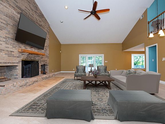Welcome to Old Stone House and this nearly 4300 square foot home with SOLAR PANELS installed in 2023. Great savings on your energy bills; see attached info plus bills from CenterPoint! The home offers so much living space, 4 bedrooms, 3.5 baths, updated kitchen, and screened in porch overlooking the half acre lot. The 2 story entry greets you as you enter which leads upstairs and to several rooms on the main level. The EXTRA LARGE great room has so much natural light from the wall of windows at the front of the house, there is a fireplace on a floor to ceiling brick wall. Just off the great room is a screened in porch. Also adjacent is the DINING ROOM with a bay window with bench seat, and hardwood flooring which is open to the kitchen. The UPDATED KITCHEN has new cabinets, reverse osmosis system, some newer appliances and quartz countertops, PLUS custom lighting. There is a sliding door just off the kitchen leading to the large back deck. The main level also offers a GUEST SUITE with a bedroom with built-ins, and full bath. Rounding out the main level is a half bath. On the upper level there is the PRIMARY SUITE with an extra large bedroom, 3 walk in closets, and the full bath has a soaking tub, separate shower, and double sink vanity.? The two additional bedrooms have ample closets, and one has a private entrance to the hallway full bathroom. Rounding out the upper level is the convenient laundry room with cabinets and folding area plus the pull down attic stairs. Outside you will find .58 acre fully fenced yard, deck, screened porch and a side load 3.5 car garage. The garage has a Bendpak lift system, the solar batteries and the 3 electrical panels with a total of 600 amp service. Don't miss your chance at this great home.