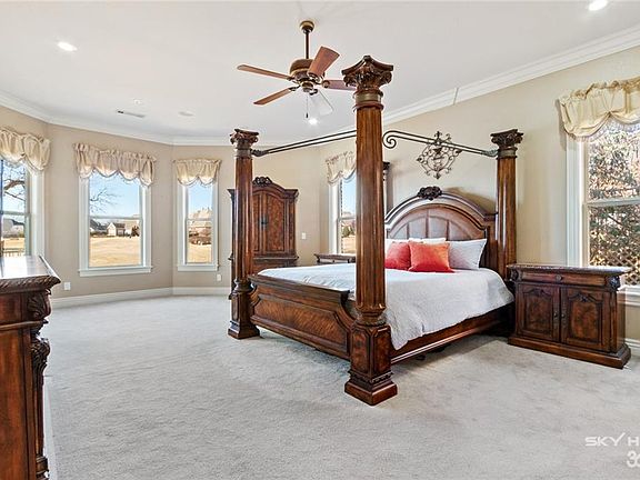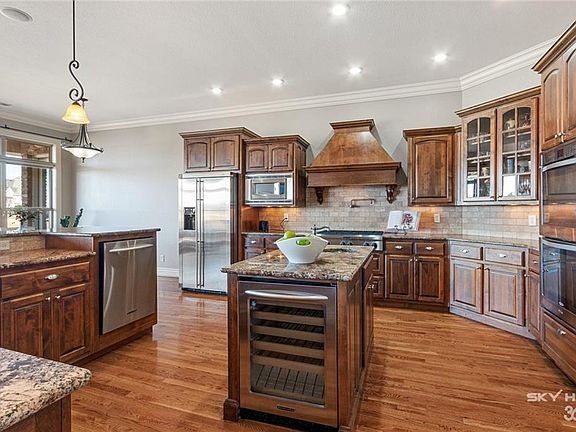 What a view! Sunsets over the 3rd green with view of Shadow Valley Lake. This home was made for entertaining! Golf front home includes golf membership. Open concept with over-sized kitchen that has NEW double ovens, gas range, pot filler wine cooler, and island with extra sink. Gorgeous bead board trey ceiling. Fresh paint! Hard wood floors throughout the main level with 2 bedrooms and 2 bathrooms. Executive office with custom built-ins. HUGE master closet with built-in dresser. Walk-in shower and jacuzzi tub in master bathroom. Finished walk-out basement has second living area with fireplace. Golf cart garage at basement level. TWO laundry rooms - one upstairs and one downstairs. This home truly has it all.