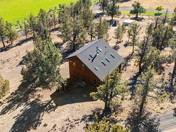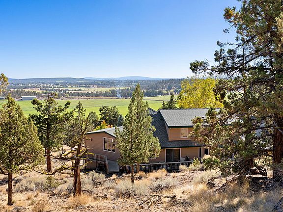 Territorial views, a rare 9.47 ac, and a timeless custom home circa 1990 can be found down a special private lane between Bend and Sisters. The main house features soaring cedar tongue and groove ceilings with rough hewn beams. Wood wrapped windows frame lovely territorial views. New interior paint throughout. This property offers country living without high maintenance grounds. Gardens, chickens, it's a blank palate! Prolific well provides domestic water and an allowable use for landscaping. Primary ensuite bedroom is on the main level. Open staircase leads upstairs to two additional bedrooms, bath, and a den/office/gym area. Spacious great room offers a gathering spot for family, friends and fun. Kitchen/nook is open and ready for your ideas and touches! Additional family room provides the real getaway, with lovely windows and easterly views. A detached cottage 1600SF, with its exceptional design, is perfect for an art studio, guest house, short term rental.